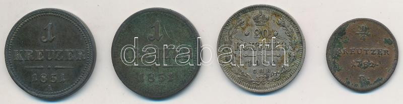 Beschreibung: Vegyes: 1782B 1/4kr Cu "II. József" + 1851B 1kr Cu + Ausztria 1851A 1kr Cu + Orosz Birodalom 1914. 20k Ag T:2-3