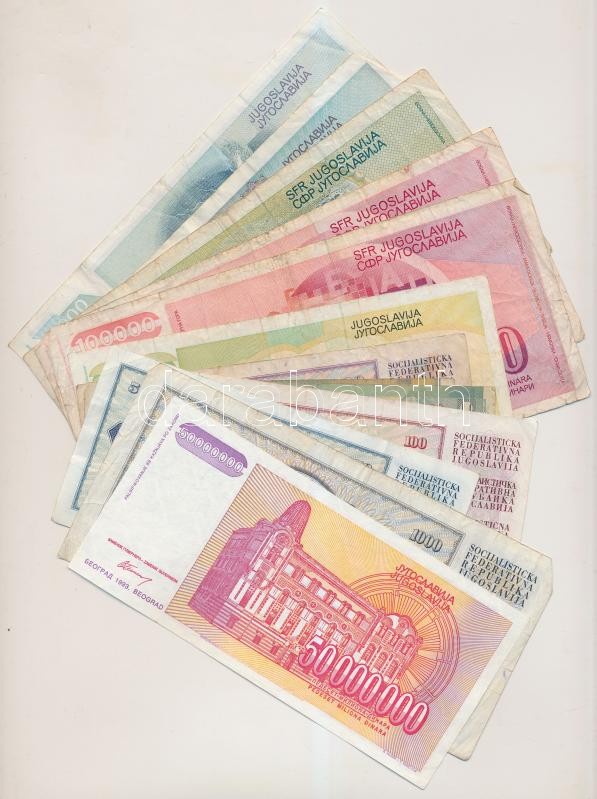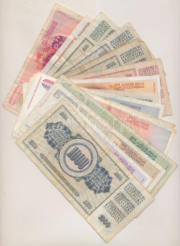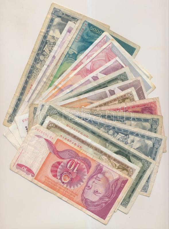 Beschreibung: Jugoszlávia 40db-os vegyes bankjegy tétel T:vegyes Yugoslavia 40pcs of banknotes C:mixed