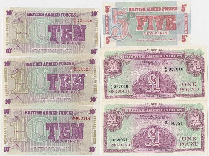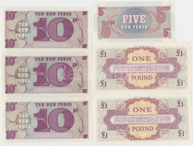 Nagy-Britannia / Katonai kiadás 1962. 1Ł (2x) + 1972. 5P + 10P (3x) T:... https://www.darabanth.com/de/261-Fernauktion/261.0/Numismatik/Weltweit-Banknoten~300012/Nagy-Britannia-Katonai-kiadas-1962-1C581-2x-plus-1972-5P-plus-10P-3x-TI--Great-Britain-British-A~II1279016