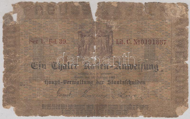 German States / Pr... https://www.darabanth.com/de/261-Fernauktion/261.0/Numismatik/Weltweit-Banknoten~300012/Nemet-Allamok-Poroszorszag-1861-1-Taller-TIV-V--German-States-Prussia-1861-1-Thaler-CG-P~II1290639