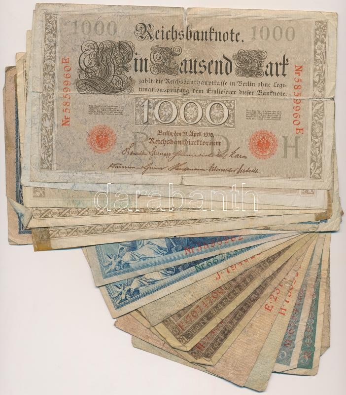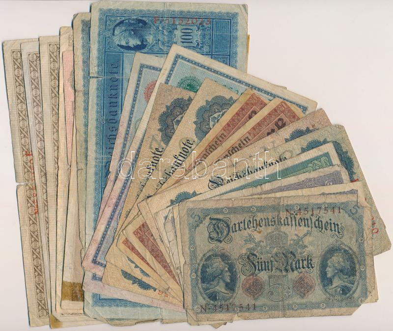 Ge... https://www.darabanth.com/de/261-Fernauktion/261.0/Numismatik/Weltweit-Banknoten~300012/Nemet-Birodalom-1904-1917-20db-os-vegyes-bankjegy-tetel-Tvegyes---German-Empire-1904-1917-20pcs~II1293261