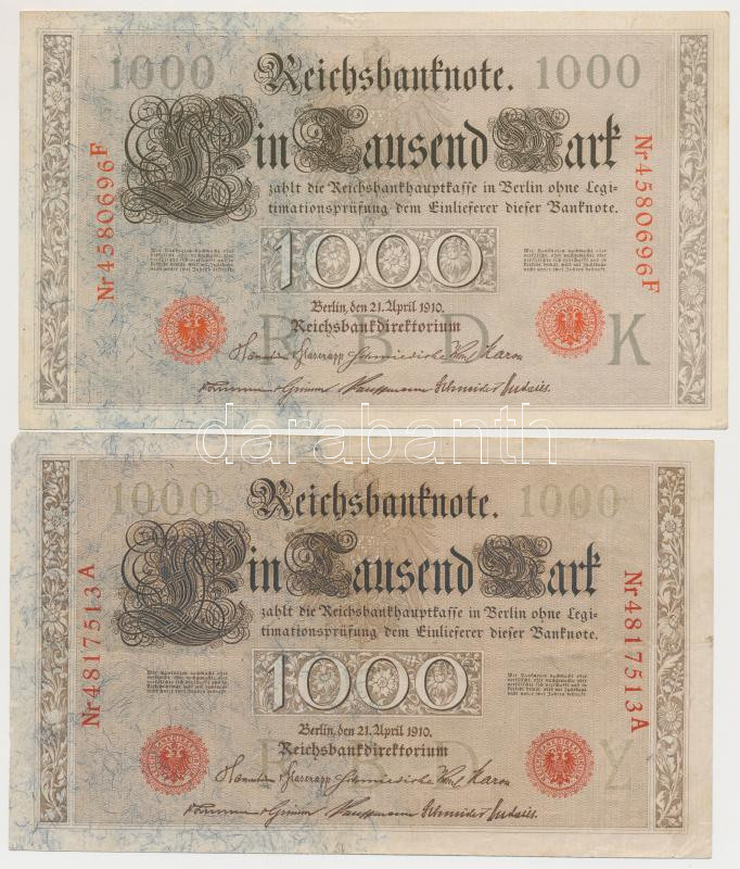 Német Birodalom 1910. 1000M (20x) benne közeli sorszámúak T:II-,III