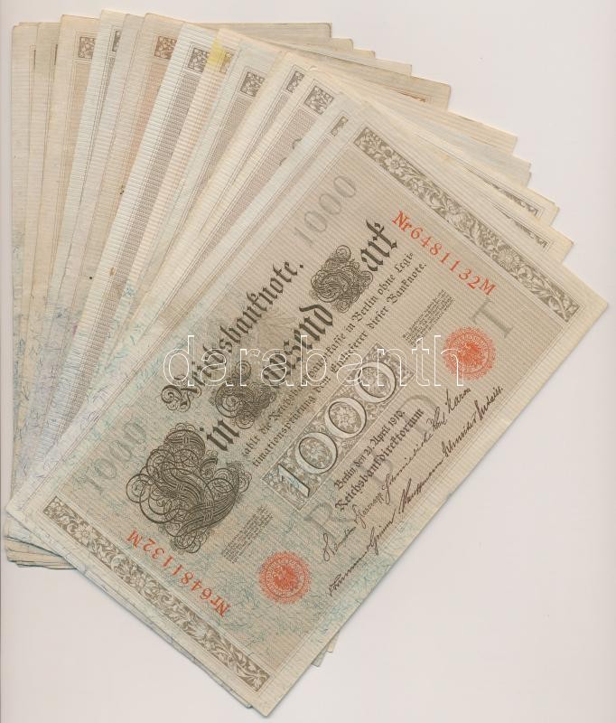 G... https://www.darabanth.com/de/261-Fernauktion/261.0/Numismatik/Weltweit-Banknoten~300012/Nemet-Birodalom-1910-1000M-20x-benne-kozeli-sorszamuak-TII-III--German-Empire-1910-1000-Ma~II1293912
