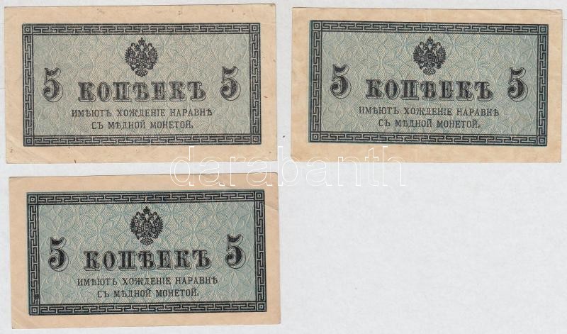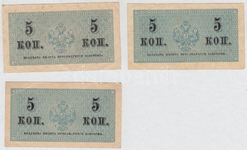 Russian Empire 1915. 5 Kopeks... https://www.darabanth.com/de/261-Fernauktion/261.0/Numismatik/Weltweit-Banknoten~300012/Orosz-Birodalom-1915-5k-3x-TII-III--Russian-Empire-1915-5-Kopeks-3x-CVF-F~II1292631