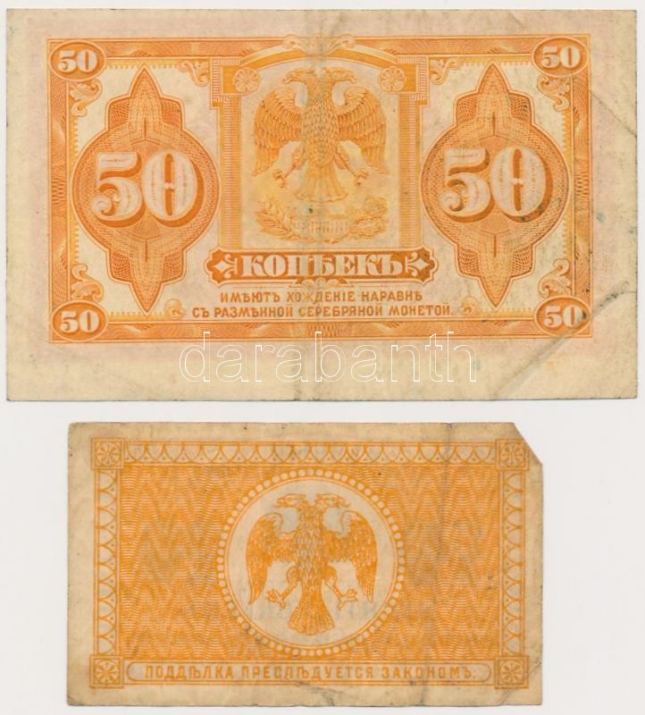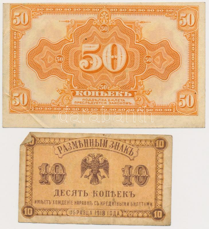Orosz Polgárháború / Kelet-Szibéria / Távol-keleti Ideiglenes Kormány / Priamur Régió 1918. 10k + 1919. 50k eltolódott nyomat T:III