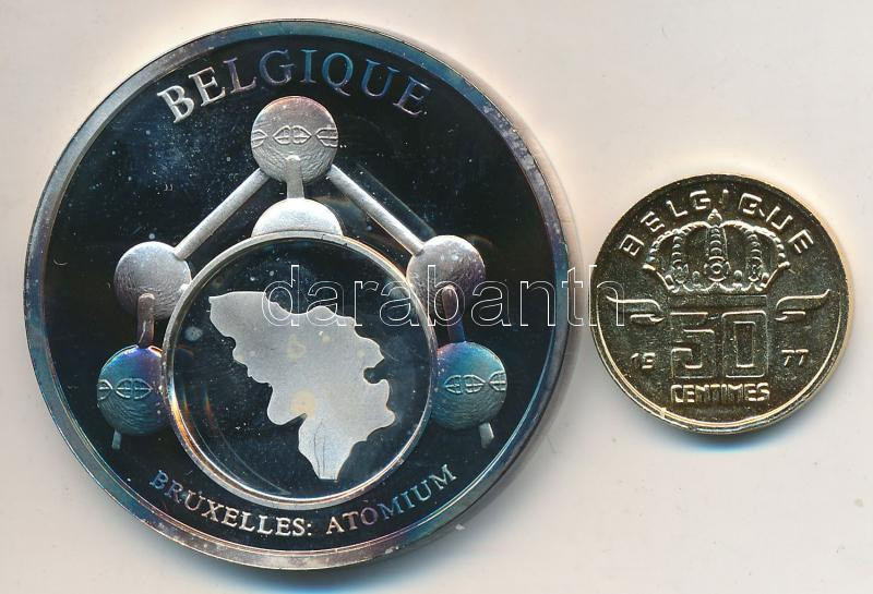 Beschreibung: Belgium DN "Európai valuták" ezüstözött Br emlékérem, "1977. 50c" aranyozott érmével (40mm) T:PP ujjlenyomat,1-