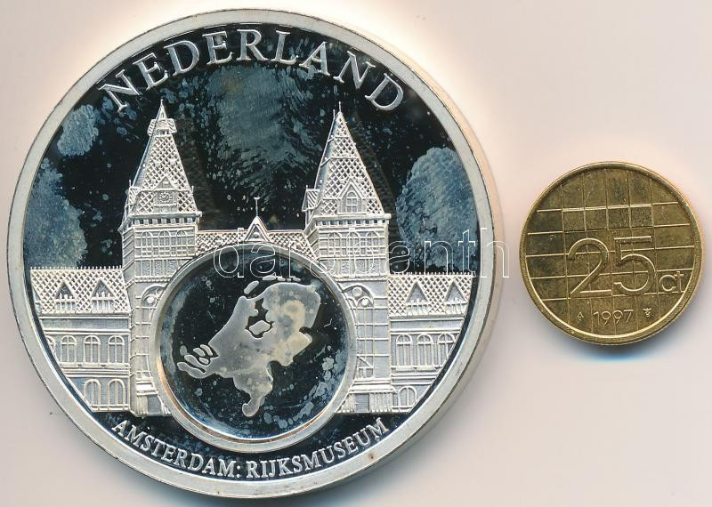 Beschreibung: Hollandia DN "Európai valuták" ezüstözött Br emlékérem, "1997. 25c" aranyozott érmével (50mm) T:PP ujjlenyomat,2
