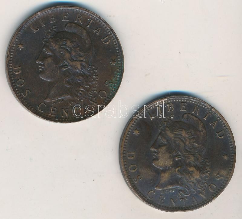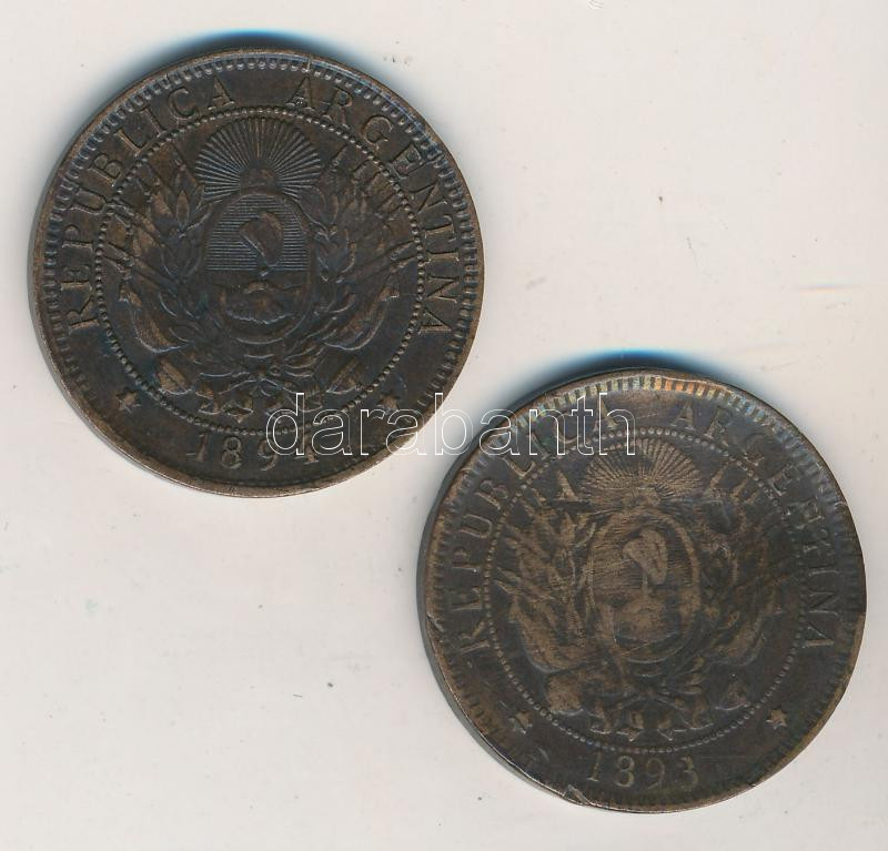 Argentína 1893-1894. 2c Br (2x) T:2-,3 egyik hajlott Argentina 1893-1894. 2 Centavos Br (2x) C:VF one curved