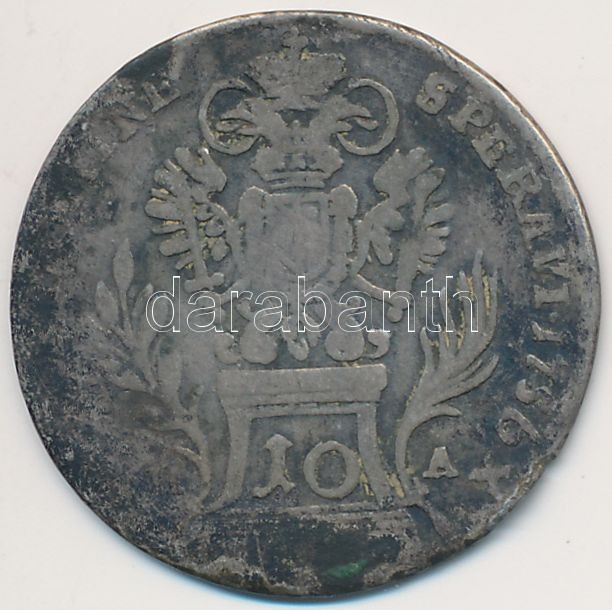 Ausztria 1756HA 10kr Ag "I. Ferenc" Hall T:3 patina, ph. Austria 1756HA 10 Kreuzer Ag "Franz I" Hall C:F patina, edge error Krause KM# 2023