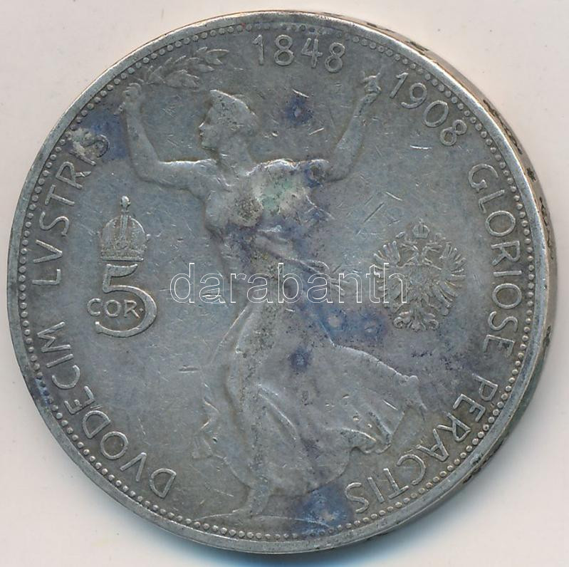 Austria 1908. 5 ... https://www.darabanth.com/de/261-Fernauktion/261.0/Numismatik/Weltweit-Munzen~300013/Ausztria-1908-5K-Ag-Jubileum-T3-patina--Austria-1908-5-Corona-Ag-Jubilee-CF-patina~II1291281