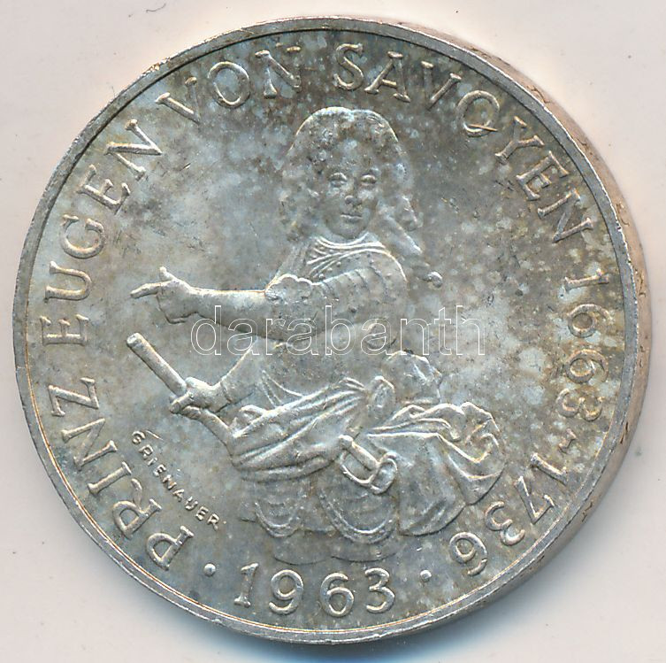 Austr... https://www.darabanth.com/de/261-Fernauktion/261.0/Numismatik/Weltweit-Munzen~300013/Ausztria-1963-25Sch-Ag-Savoyai-Jeno-T2-kis-patina--Austria-1963-25-Schilling-Ag-Prinz-Eugen-v~II1291147