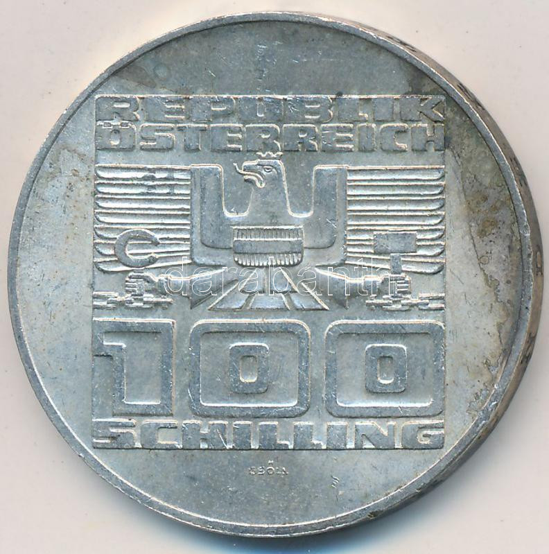Beschreibung: Ausztria 1975. 100Sch Ag "50 éves a Schilling" T:2 ph., patina