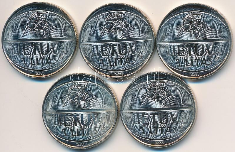Litvánia 2011. 1L Ni "Kosárlabda EB" (5x) T:1,1- Lithuania 2011. 1 Litas Ni "Basketball Championship" (5x) C:UNC,AU