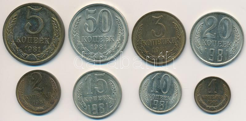 Szovjetunió 1981. 1k-50k (8xklf) T:1- Soviet Union 1981. 1 Kopek - 50 Kopeks (8xdiff) C:AU