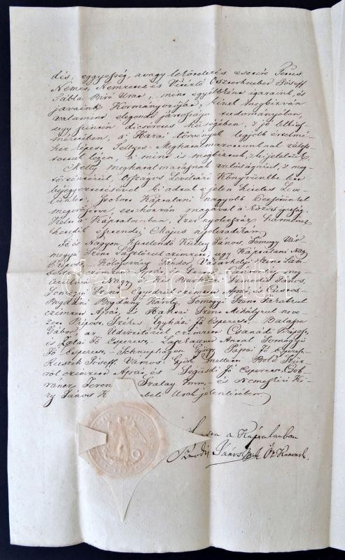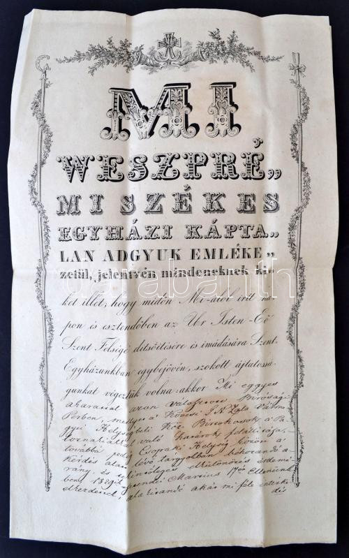1837 A Veszprémi Székesegyház káptalanjának hiteles levele, melyben Oszterhuber Sándort bízzák meg a rend jogi képviseletével. Metszett fejléces papíron, viaszpecséttel