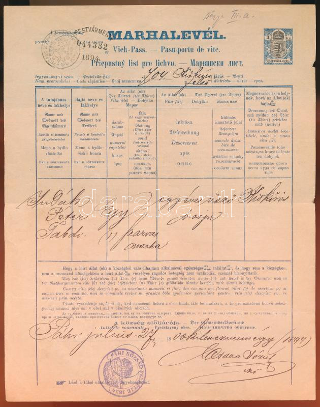 1894 Marhalevél Kiskőrösről, "Páhi község pecsétje 1854", va... https://www.darabanth.com/de/262-Fernauktion/262.0/Andere-Sammelgebiete/Dokument~36/1894-Marhalevel-Kiskorosrol-Pahi-kozseg-pecsetje-1854-valamint-Kiskoros-varosa-pecsC3~II1304441