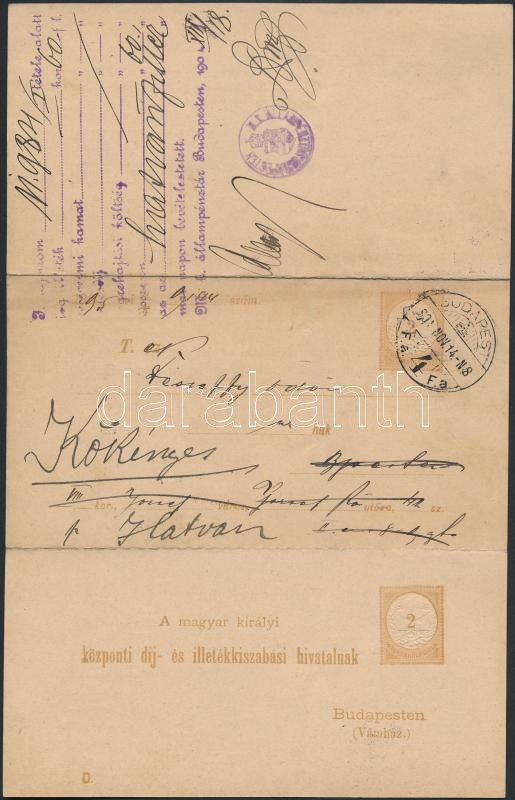 Beschreibung: 1901 Adóhivatali intés és vétbizonyítvány perforált levelezőlapként