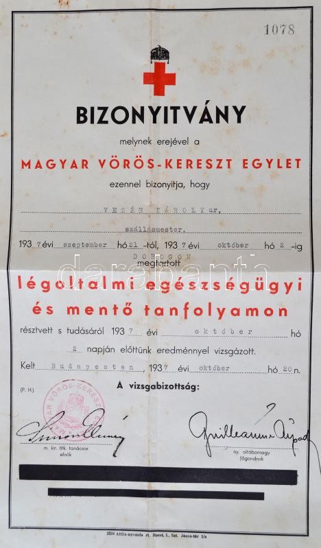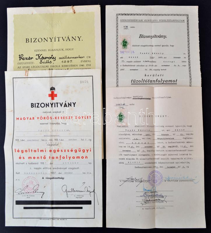 1937-42 Bizonyítványok légoltalmi egészségügyi, illetve tűzoltói tanfo... https://www.darabanth.com/de/262-Fernauktion/262.0/Andere-Sammelgebiete/Dokument~36/1937-42-Bizonyitvanyok-legoltalmi-egeszsegugyi-illetve-tuzoltoi-tanfolyamokrol-szamos-al~II1298661