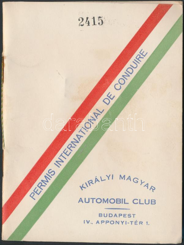 1939 Nemzetközi Gépjárómű Forgalmi engedély, Nemzetközi Vezetői Engedély, Királyi Magyar Automobil Club, fényképpel, de személyi adatok nélkül. Szép állapotban. / International driving licence, in good condition.