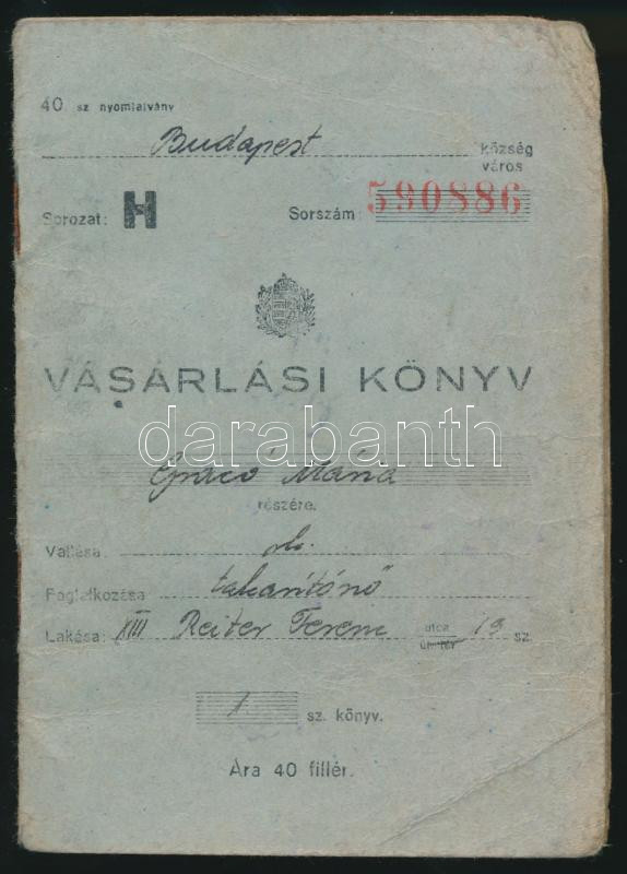 1941 Vásárlási könyv, pp.:32, 14x10cm https://www.darabanth.com/de/262-Fernauktion/262.0/Andere-Sammelgebiete/Dokument~36/1941-Vasarlasi-konyv-pp32-14x10cm~II1305360