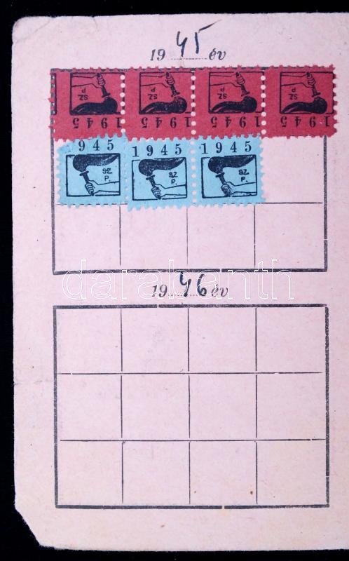 Beschreibung: 1945 a Szociáldemokrata Párt tagsági könyve, tagsági bélyegekkel