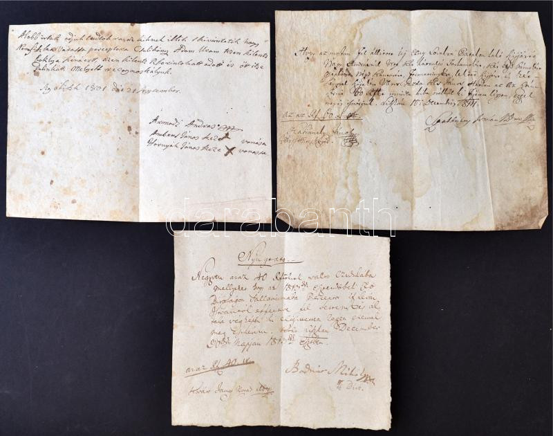 Beschreibung: cca 1800 Olaszliszka környéki földbirtokosok által aláírt 3 db magyar nyelvű nyugta