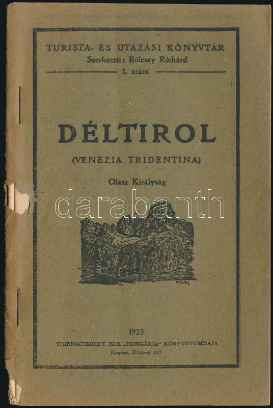 1923 "Déltirol(Venezia Tridentina)" , szerkeszti Bölcsey Ric... https://www.darabanth.com/de/262-Fernauktion/262.0/Andere-Sammelgebiete/Drucksachen~20/1923-DeltirolVenezia-Tridentina--szerkeszti-Bolcsey-Richard-Turista-es-Utazasi-Konyvta~II1301690