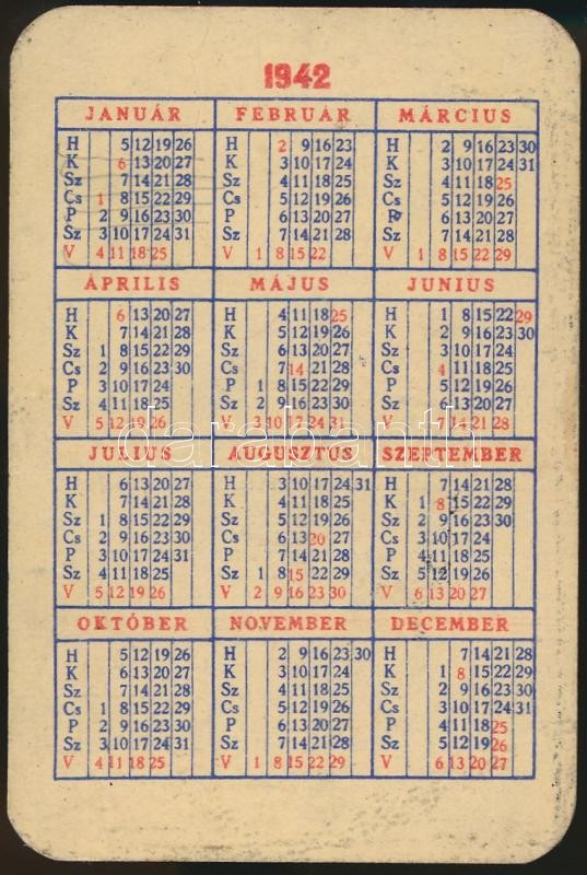 Beschreibung: 1942 Arany Ászok reklámos kártyanaptár