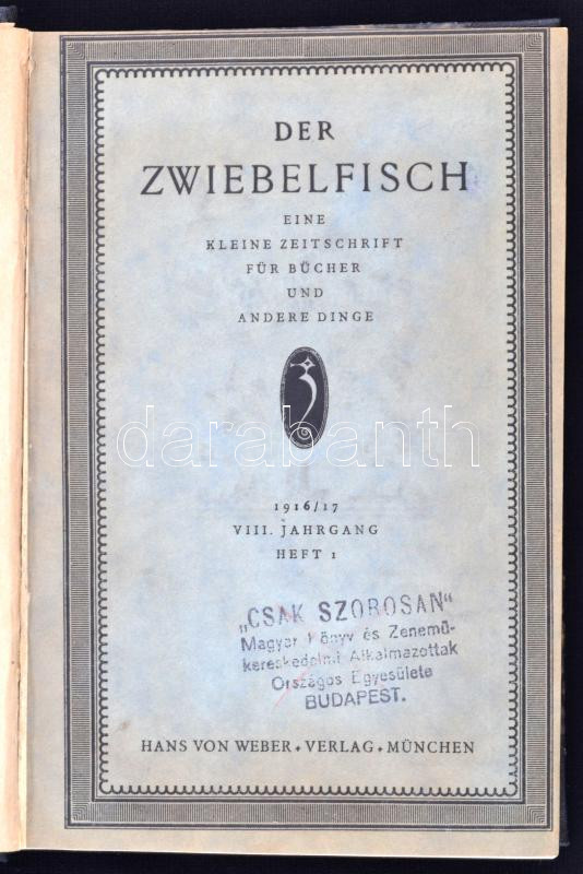 Der Zwiebelfisch. Eine kleine Zeitschrift für Bücher und andere Dinge. 1919/17. VIII. Jahrgang. Heft. München, 1917, Hans Von Weber Verlag. 192 p. Korabeli félvászonkötésben.