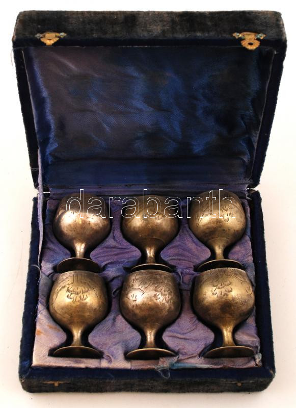 CPN fém likőröspohár, 6db, díszdobozban, m:5,5cm https://www.darabanth.com/de/262-Fernauktion/262.0/Andere-Sammelgebiete/Flohmarkt~12/CPN-fem-likorospohar-6db-diszdobozban-m5-5cm~II1301884