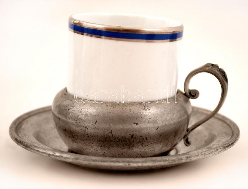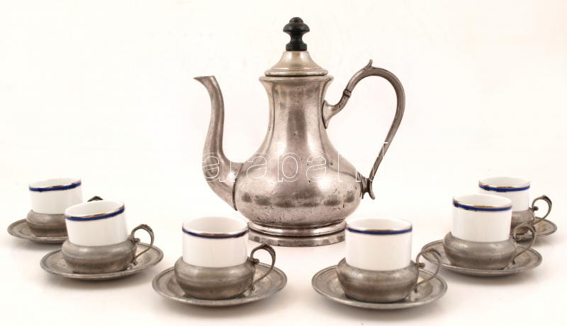 Beschreibung: E.P.U. ón mokkás készlet porcelán betéttel, jelzett, jó állapotban
