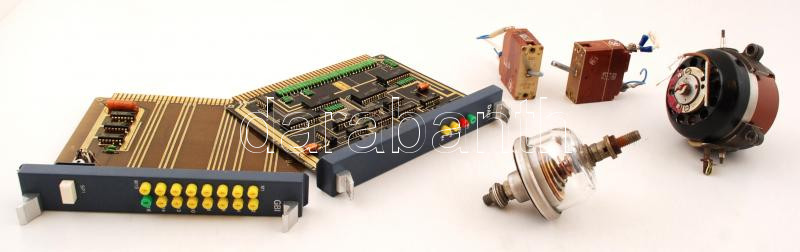 Beschreibung: Vegyes műszaki tétel: német és orosz gyártmányú áramkörök, kapcsolók, stb., összesen 6 db, jó állapotban