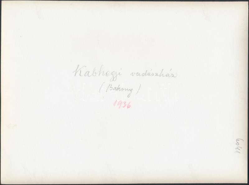 1936 Bakony, A kabhegyi vadászház, hátoldalon feliratozva, 18x24 cm https://www.darabanth.com/de/262-Fernauktion/262.0/Andere-Sammelgebiete/Foto~26/1936-Bakony-A-kabhegyi-vadaszhaz-hatoldalon-feliratozva-18x24-cm~II1301297