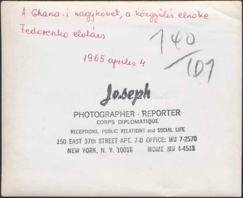 1965 USA a ghánai nagykövet és Fedorenko elvtárs. Pecséttel jelzett fo... https://www.darabanth.com/de/262-Fernauktion/262.0/Andere-Sammelgebiete/Foto~26/1965-USA-a-ghanai-nagykovet-es-Fedorenko-elvtars-Pecsettel-jelzett-foto-13x10-cm~II1265533