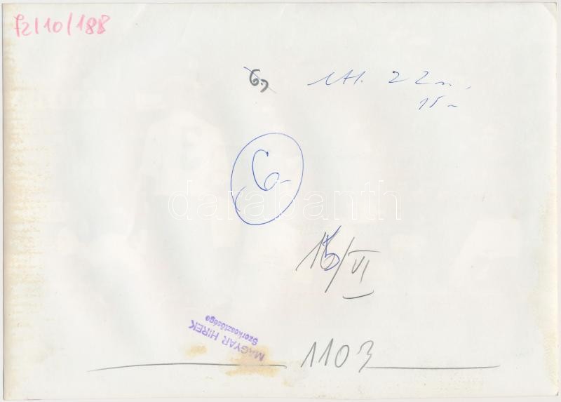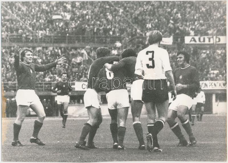 1972 Két magyar gólöröm az Ausztria-Magyarország VB-selejtező mérkőzésen a bécsi Prater Stadionban, a vége 2:2. Hátoldalon pecséttel. 2 db fotó. 24x18 cm.