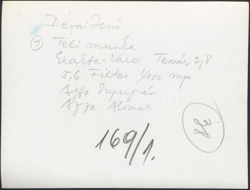 Dévai Jenő: Téli munka, hátoldalon feliratozva, 9x12 cm https://www.darabanth.com/de/262-Fernauktion/262.0/Andere-Sammelgebiete/Foto~26/Devai-Jeno-Teli-munka-hatoldalon-feliratozva-9x12-cm~II1304156