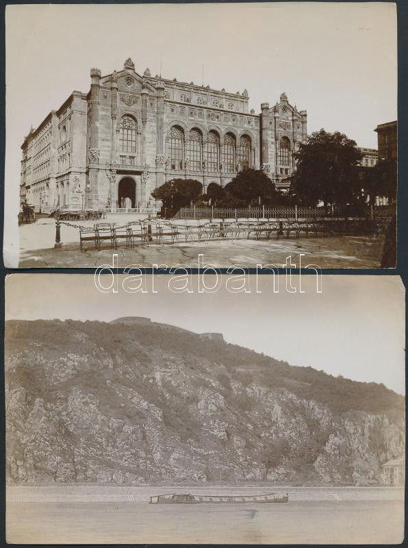 Beschreibung: cca 1880-1900 Régi Budapesti fotók: Vígadó, Mátyás templom, Gellért hegy, 3db, 9x14cm