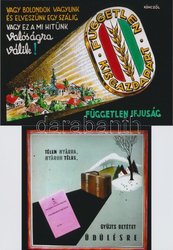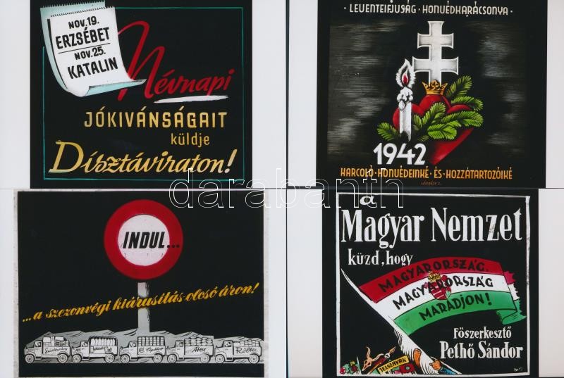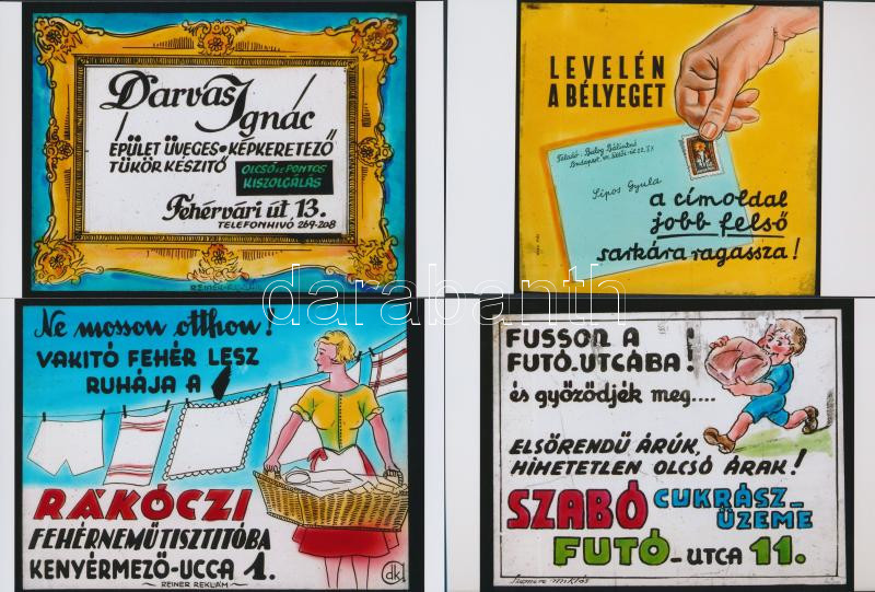 cca 1946 Fekete György (1904-1990) budapesti fényképész hagyatékában őrzött, mozikban vetített 13 db színezett reklám diapozitívról készült modern nagyítások, vegyes témák, 10x15 cm