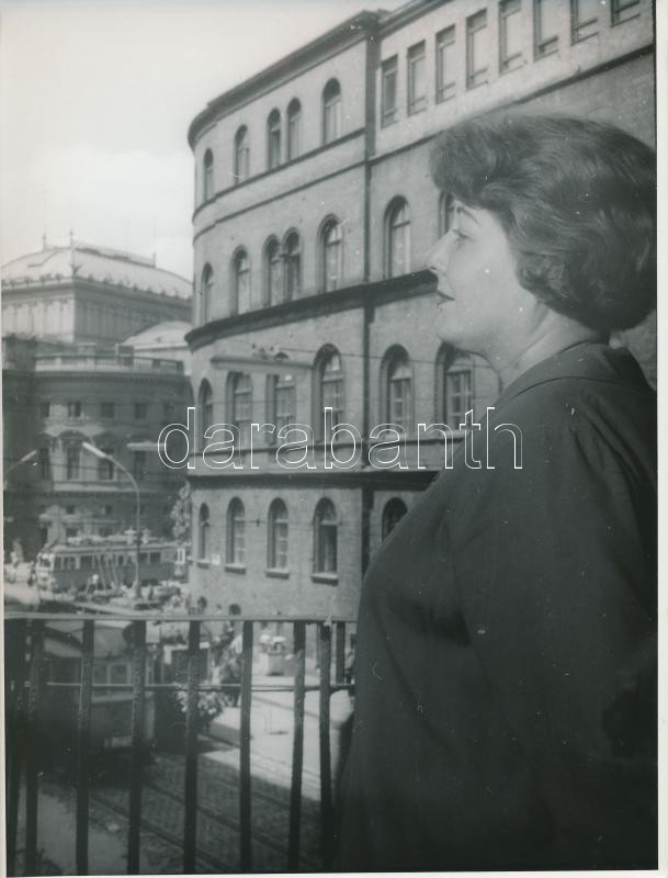 cca 1960 Budapest, Nemzeti Színház villamosokkal, a Népszínház utcából fényképezve, Kotnyek Antal (1921-1990) fotóriporter jelzés nélküli vintage felvétele, 24x18 cm