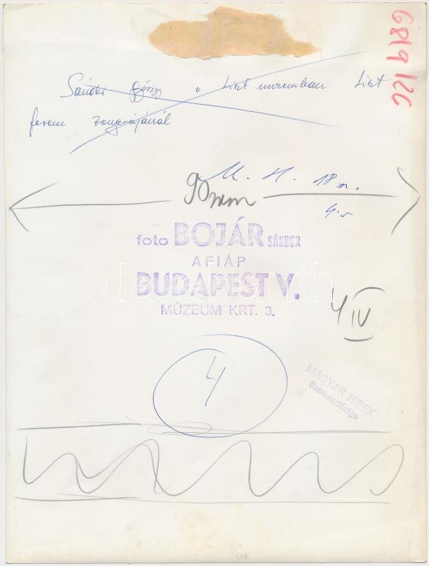 Beschreibung: cca 1968 Sándor György a Liszt Múzeumban Liszt Ferenc zongorájánál. Bojár Sándor felvétele. A hátoldalon pecséttel jelzett. 24x18 cm
