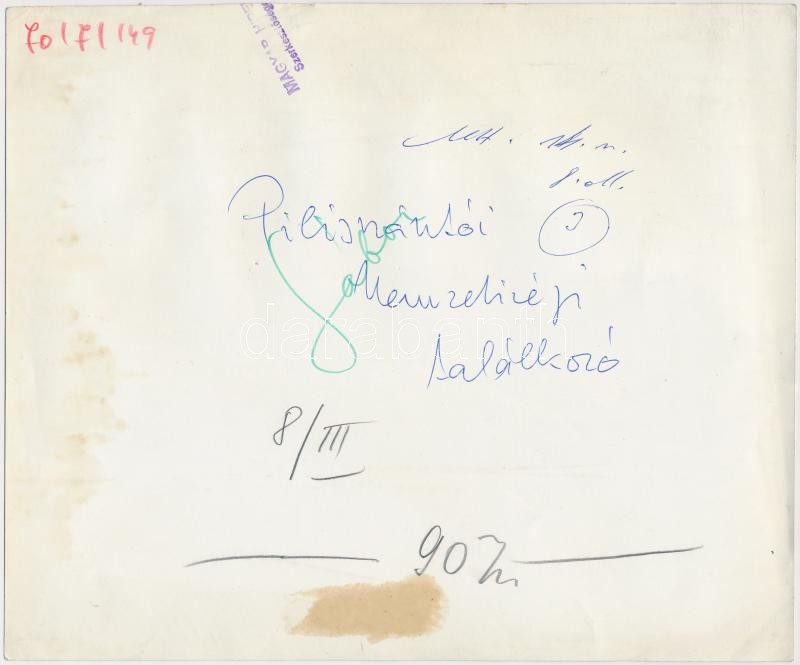 Beschreibung: cca 1970 A Pilisszántói Nemzetiségi Találkozó. A hátoldalon pecséttel. 24,5x21 cm.