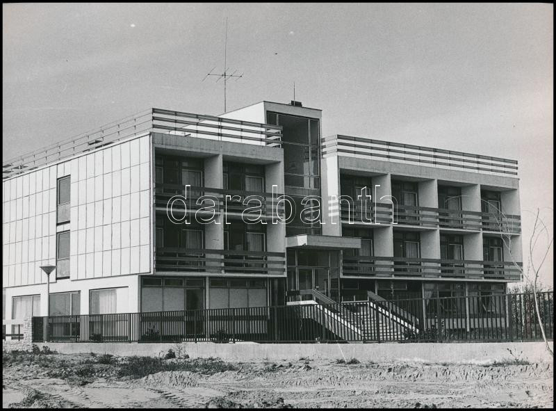 Beschreibung: cca 1974 Agárd, a Fejér megyei Állami Építőipari Vállalat agárdi munkásszállója, a FÁÉV jubileumi fotóalbumából, 20x27 cm