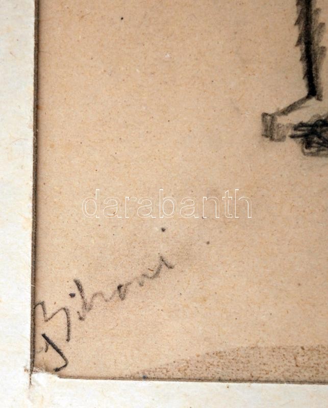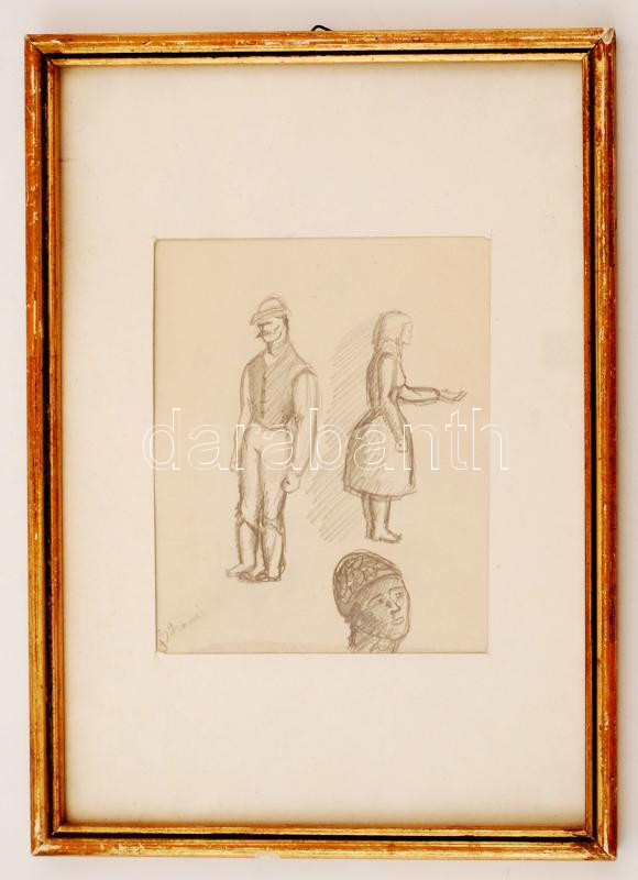 Beschreibung: Bihari jelzéssel: Vázlatok, ceruza, papír, paszpartuban, üvegezett fa keretben, 15×13 cm