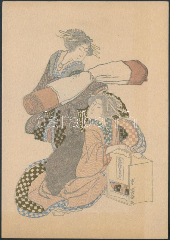 Jelzés nélkül: Gésák. Vegyes technika, papír, 14x10 cm https://www.darabanth.com/de/262-Fernauktion/262.0/Andere-Sammelgebiete/Gemalde-und-Grafiken~400051/Jelzes-nelkul-Gesak-Vegyes-technika-papir-14x10-cm~II1299958