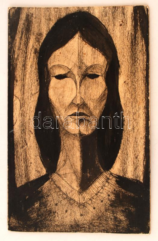 Beschreibung: Jelzés nélkül: Női portré. Vegyes technika, papír-falemez, 32×20 cm