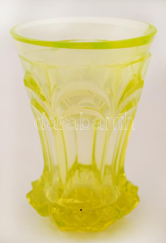 Beschreibung: Biedermeier uránüveg ivópohár,csiszolt, kis csorbával, m:13cm