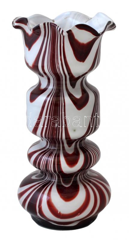 Beschreibung: Tejüveg váza bordó szálas díszítéssel, jelzés nélkül, hibátlan, m:25 cm