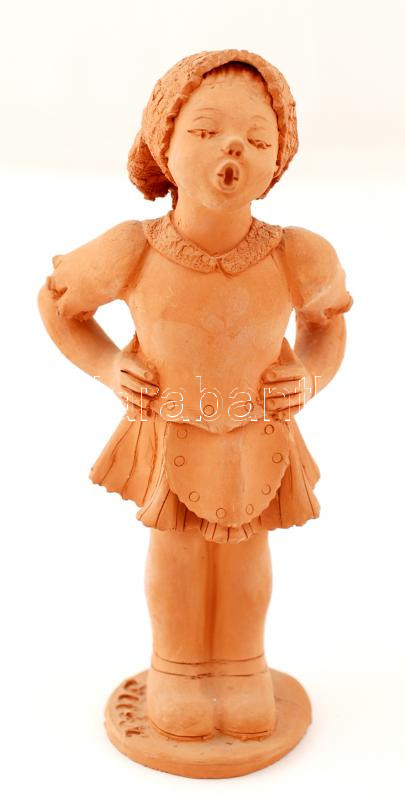 Beschreibung: Illár Erzsébet (1940- ):Éneklő kislány. Égetett agyag, jelzett, jó állapotban, m:20 cm