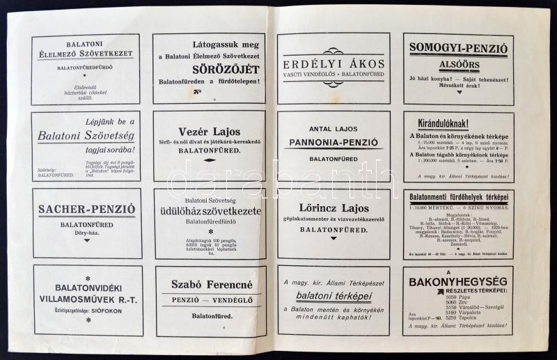 Beschreibung: 1928 Balatonfüredfürdő térkép, Magyar Fürdőtérképek 3. , verzón reklámokkal, 25x40cm