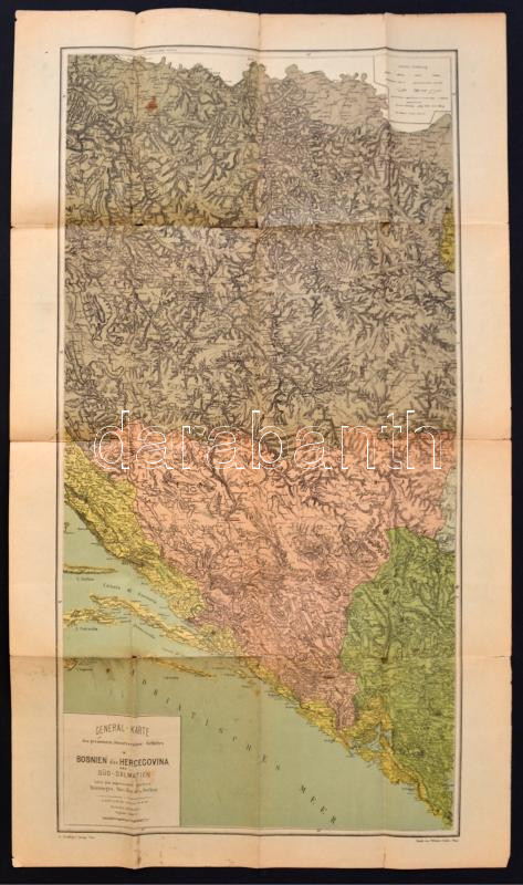 Beschreibung: cca 1878 General-Karte Bosnien, der Herzegovina und Süd-Dalmatien, 1:450.000, hajtás mentén kissé szakadásokkal, 82x50cm